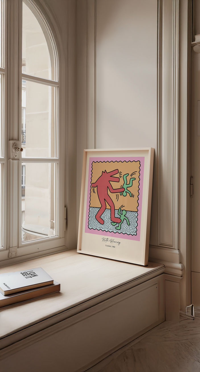 Keith Haring - Monster - Doğal Ahşap Çerçeveli Tablo