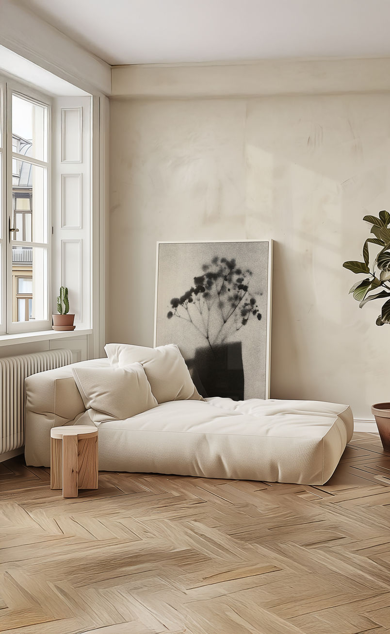 Minimalist dokusu sayesinde modern ve sakin iç mekânlara derinlik katar.
