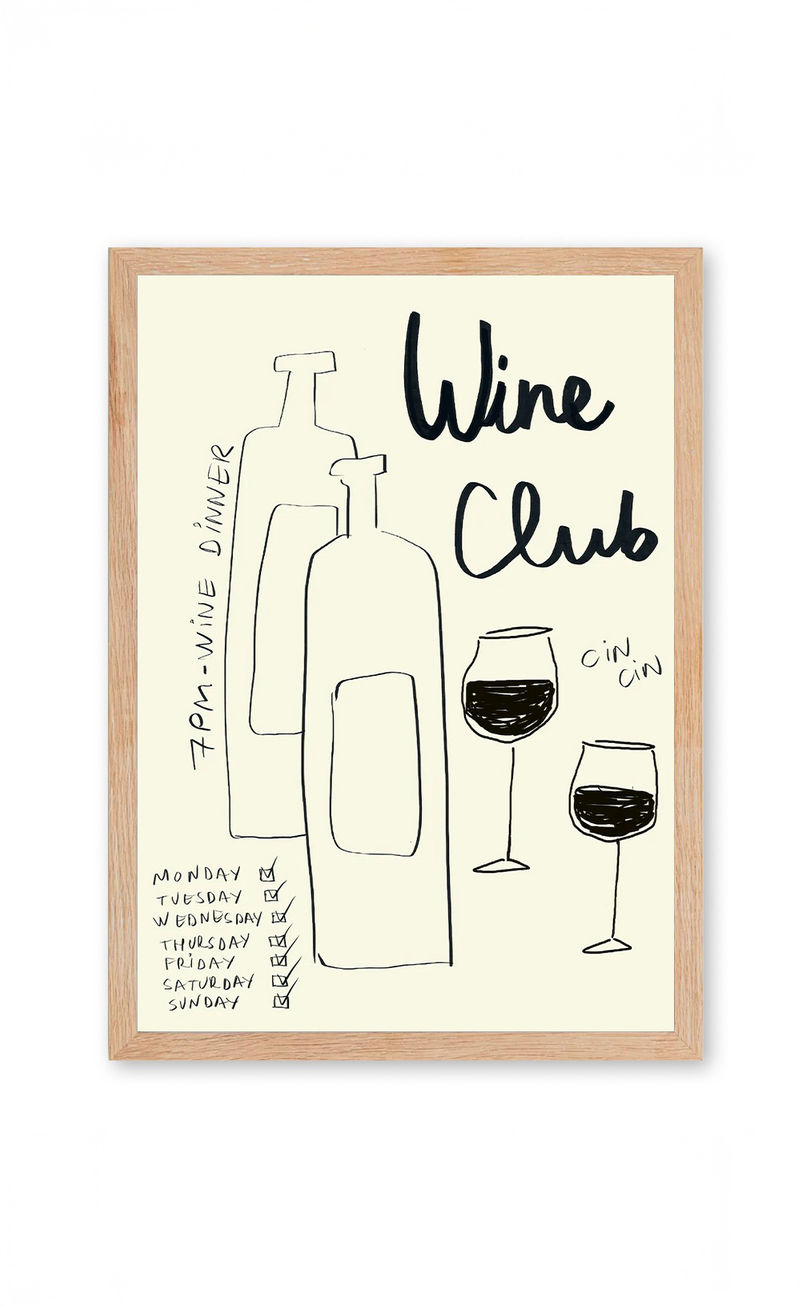 Wine Club Poster - Doğal Ahşap Çerçeveli Tablo
